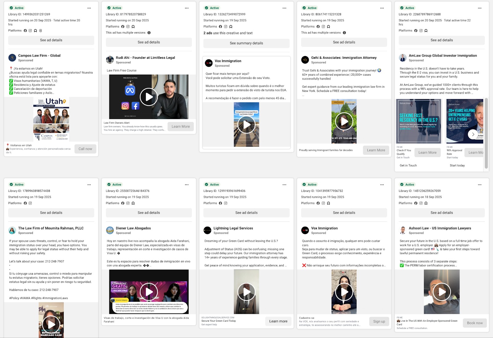 Through Meta Lead Ads with conditional logic and phone verification, we pre-qualify leads by case type (e.g., visa applications, deportation defense, citizenship cases). This ensures your intake team receives only verified, relevant inquiries.