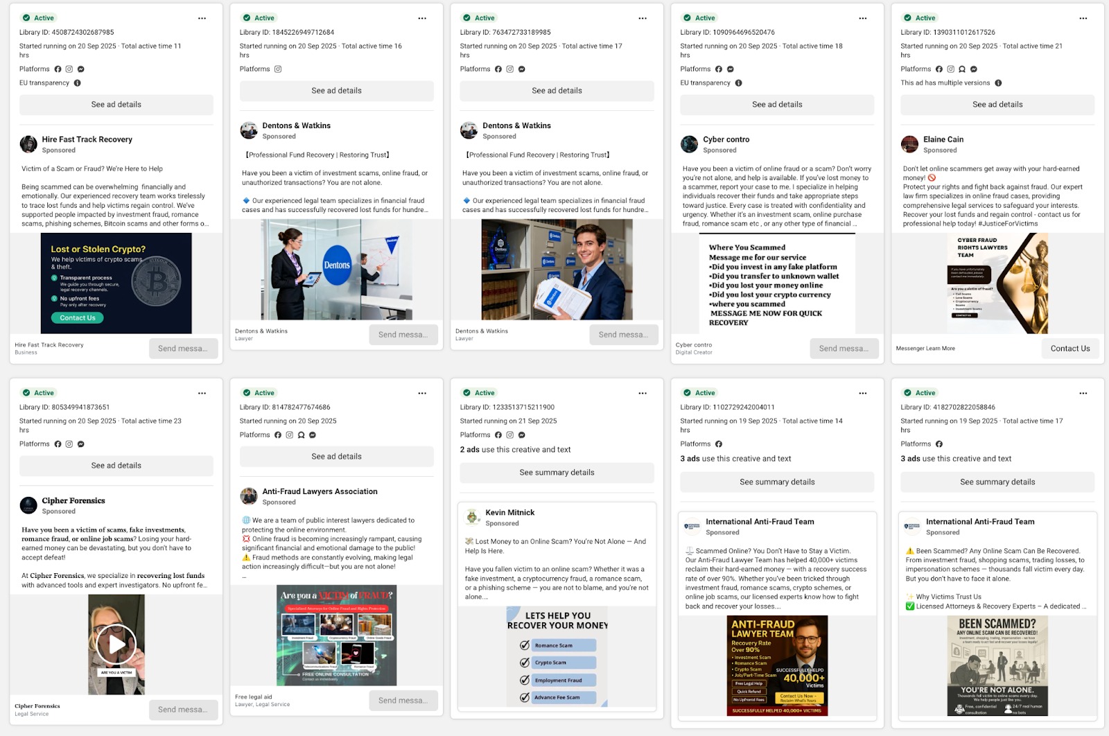 While PPC captures those actively searching, Meta Ads (Facebook & Instagram) allow you to reach prospects before they type their first query into Google. Many victims of fraud scroll social media while looking for answers, and with the right targeting, your firm can be in front of them first.