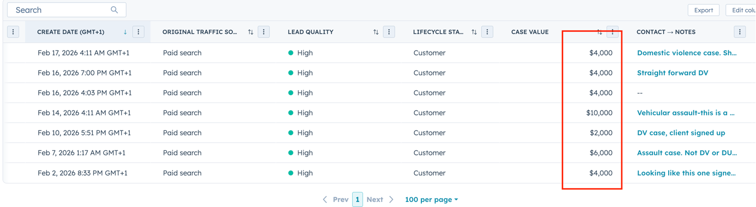 In the first month, a newly onboarded Criminal Defense lawyer generated 6 signed cases through 27 leads from PPC and 18 calls from Local Service Ads focused on DUI and DV.